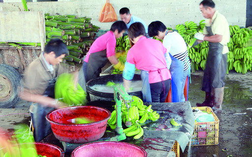 在德庆县新圩镇旺岗村,大批本地香蕉经过清洗,打好包装准备运往北方市场。 西江日报记者 刘春林 摄