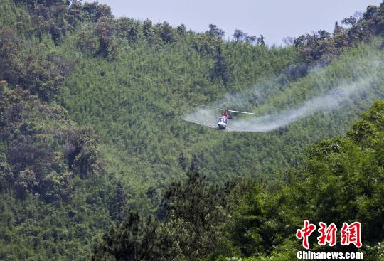 肇庆广宁县的飞机洒药防治林业病虫害作业。 资料图 摄
