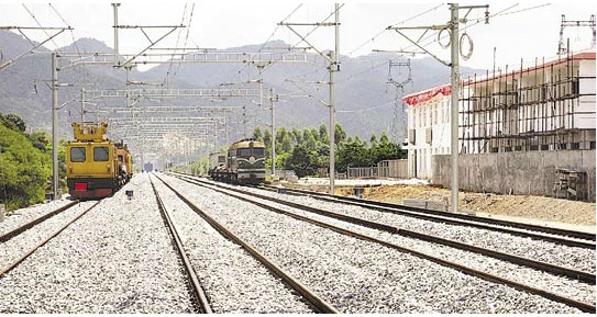 图为南广铁路肇庆西站段。途经高要市小湘、大湾等镇的南广铁路建设进展顺利,日前,位于高要大湾镇的南广铁路肇庆西站正在抓紧进行全面装修,开始跟进设备安装,进展符合预期,为9月份广东段联调联试和年底全线通车赢得时间。