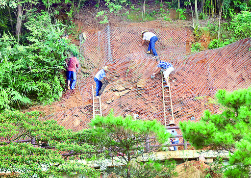 羚羊山古栈道文化森林公园生态护坡工程在进行中。