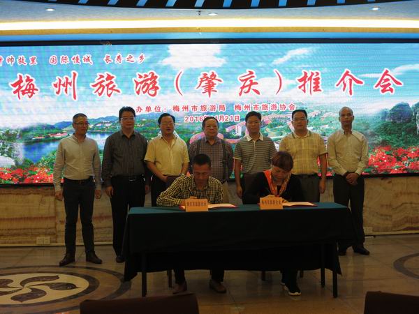 今日肇庆网讯 11月 21日下午,梅州市来肇庆举办旅游推介交流活动,两市旅游局签订了区域合作协议,两地旅行社代表签订了游客互送协议。