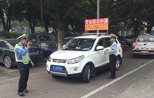 今日肇庆网讯 18日上午,肇庆市公安局交警支队第一大队联同城监执法部门在辖区范围内开展了一场针对机动车辆占道摆卖及车身广告等违法行为的专项整治行动。