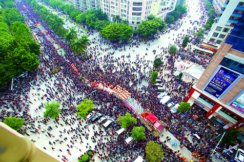 昨日是传统的元宵佳节,以民间艺术巡演、“炮仗攻狮子”和烟花文艺晚会为主打的万众欢腾庆元宵活动,在德庆县城上演。来自西江流域及珠三角一带近30万群众和游客涌向德庆县城。一时间,大街小巷人山人海,锣鼓喧天,鞭炮齐鸣。