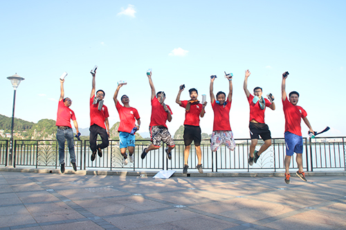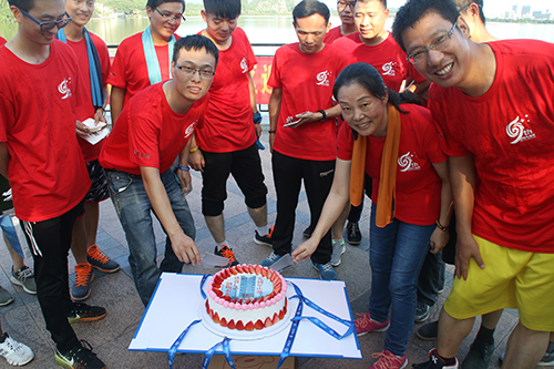 下午三点半,来自肇庆地区五个项目的40余名职工来到美丽星湖的“S”形弯道处,以9人一组接力跑的方式比赛。准备活动之后,随着一声令响,大家拿出了平时在工作中的拼劲,奋力向前冲刺。运动的喜悦化作一张张阳光的笑脸。最终,来自肇庆东站项目的代表队伍获得团体冠军。活动最后,伴着碧水青山,大家共切生日蛋糕,齐唱生日歌,与司同庆。