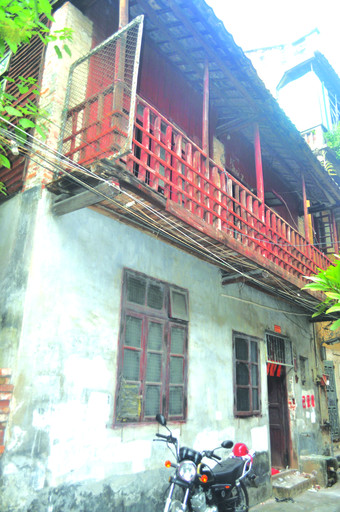 立新街的这座“红楼”全部用木材修建,十几年前一楼才被改建成泥砖混合结构。 记者 李文华 摄