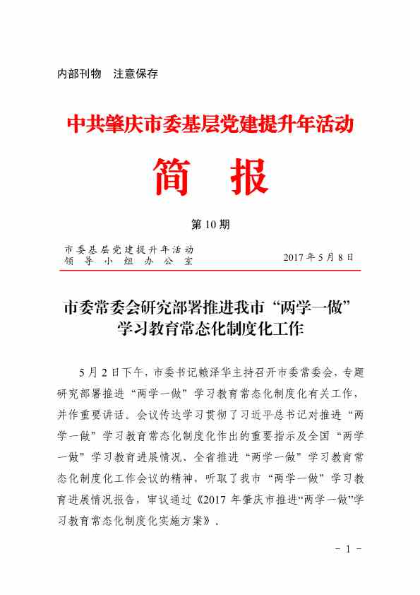 2017年第10期 市委常委会研究部署推进我市“两学一做”