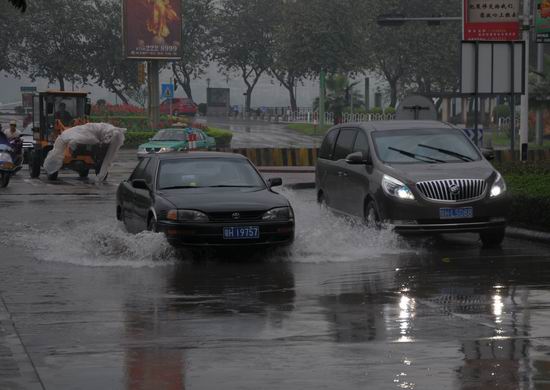暴雨造成多处积水 渠务工人紧急清疏