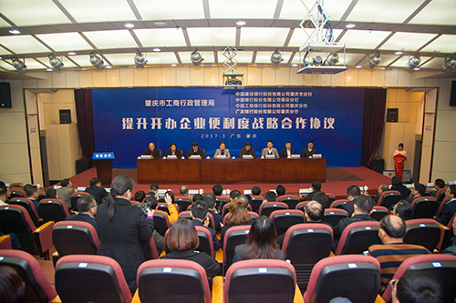 3月10日,肇庆市工商局举办与与多家银行机构签署提升开办企业便利度战略合作框架协议暨颁发首张金融功能电子营业执照活动仪式。市政府陈宣群副市长出席仪式,并向企业颁发了我市首张具有金融功能电子营业执照。
