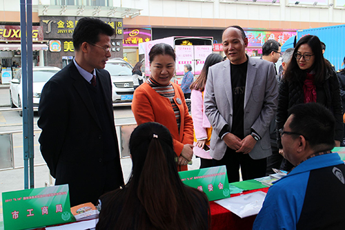 3月15日,市工商局和消委会联合在星湖国际广场举办2017年“3.15”国际消费者权益日宣传咨询系列服务活动。市政府副市长陈宣群、市工商局局长冼以良和相关职能部门的领导出席了本次启动仪式。